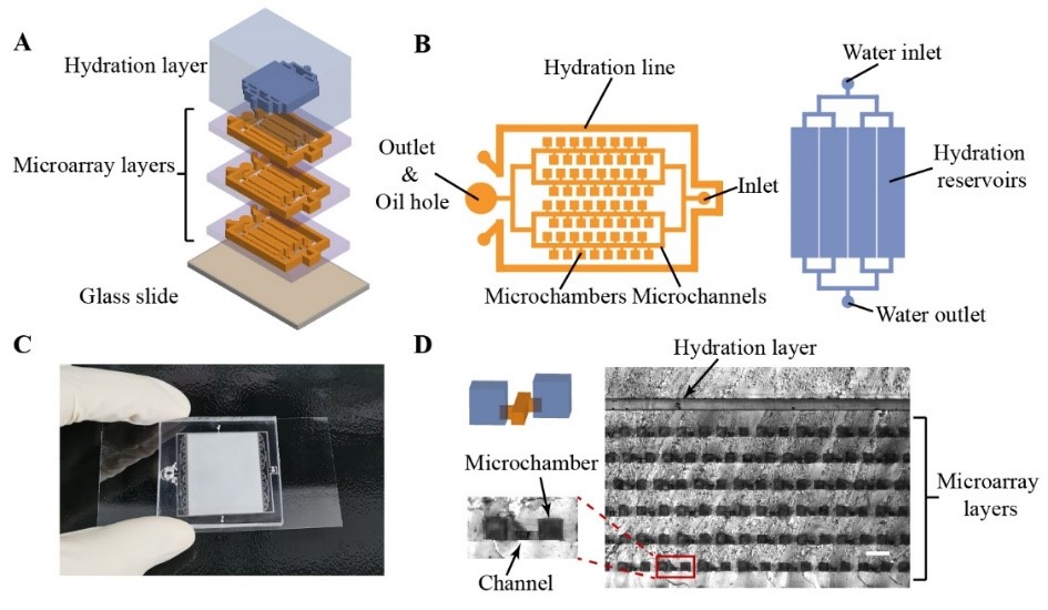 在各种核酸定量手段中,数字PCR或者数字LAMP作为单分子水平的绝对定量方法,提供了极高的准确性。与实时定量PCR相比,数字核酸定量的方法显然有潜力为诊断、预后和预测提供更灵敏、更可重复的临床方法。然而,其应用受到高成本和复杂操作的严重限制。在这项研究工作中,研究团队提出的3D可扩展芯片用于核酸绝对定量,它不仅具有更高的灵敏度和准确性,而且成本更低,操作更容易,在临床诊断中具有相当大的应用前景。