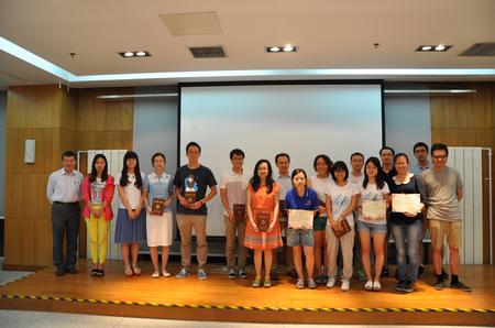 陈建国教授、魏平研究员及罗春雄副教授与获得三等奖的同学们合影 |