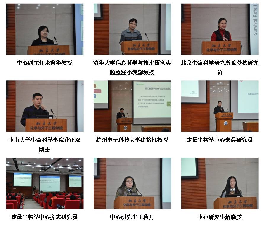 定量生物中心副主任来鲁华教授作了中心年度报告,对过去一年中心的科研与教学工作进行了总结,并对中心未来的发展进行了展望。特邀报告人清华大学信息科学与技术国家实验室汪小我副教授,北京生命科学研究所董梦秋研究员,中山大学生命科学学院花正双博士,杭州电子科技大学徐铭恩教授,分别就miRNA的定量调控,定量生物学在“衰老”研究中的应用,AMD对微生物生态学及进化学的研究以及生物3D打印技术等方面的研究成果向与会师生进行了介绍。此外,定量生物学中心新入职PI宋晨博士和齐志博士分别向与会师生介绍了其科研方向、近期成果等内容。来自校内外相关领域的约百余位师生参加了此次学术年会。