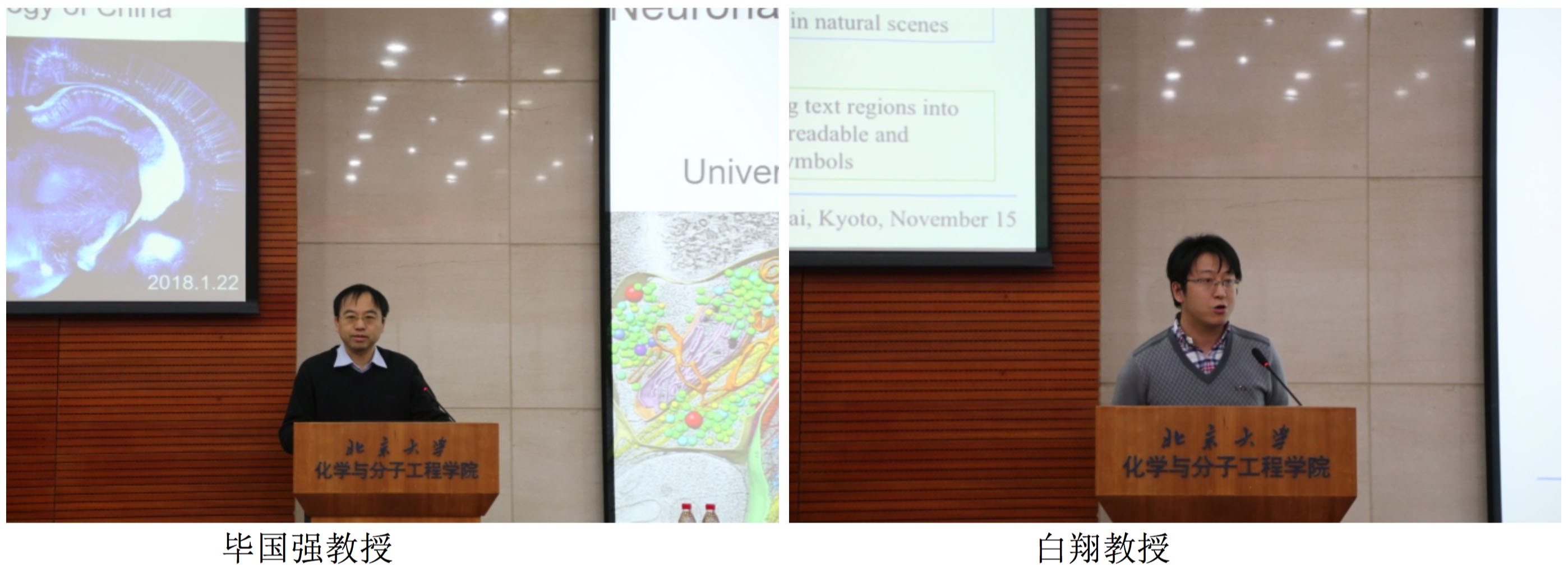 1月22号上午8时30分,中心学术交流会正式开始。会议伊始,定量生物学中心主任汤超教授代表中心致欢迎辞。随后,中心副主任来鲁华教授作了中心年度报告,从学生培养、科研进展、团队建设等方面对中心工作进行了回顾与总结,肯定了过去一年里中心所取得的成果,并对中心今后的发展提出了展望。进入到邀请报告环节,来自中国科学技术大学生命科学学院的毕国强教授、华中科技大学子信息工程系的白翔教授、北京邮电大学物理系的兰岳恒教授以及北京大学分子医学研究所的陈良怡教授分别作了题为“Neuronal learning from synapse to network”、“Deep Neural Networks for Scene Text Reading Revisited”、“The computation of noisy signal in cells”以及“发展先进荧光成像技术研究生物学中的定量问题”的报告,并和与会师生进行了良好的互动。当天下午,57名研究生/本科生进行科研工作汇报,与大家分享了个人的科研进展。晚饭过后,进入墙报展讲环节,65名研究生/本科生向大家展示和讲解海报,听众积极提问,讲解者耐心作答,现场人声鼎沸、气氛热烈。会议第二天是头脑风暴总决赛,共13支队伍进行了成果展示。