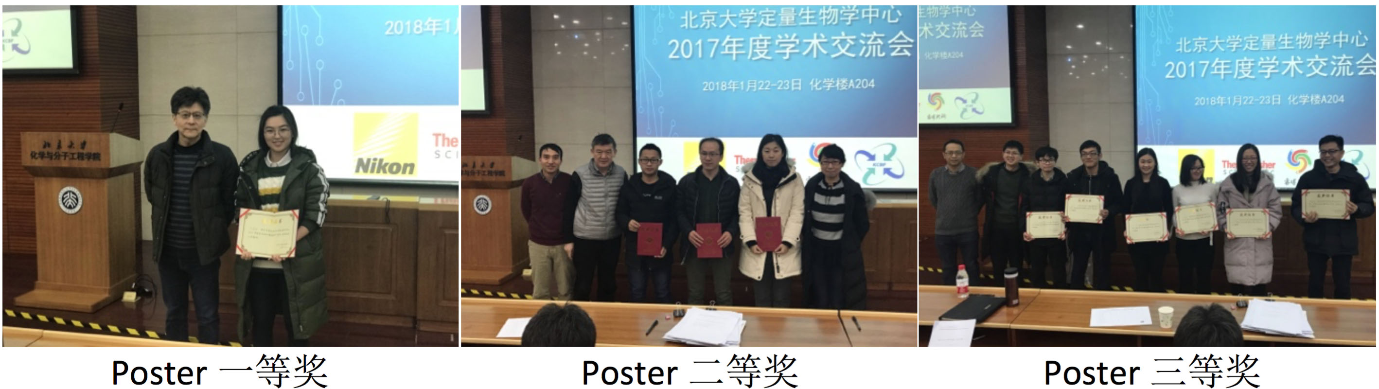 本次会议共评选出6支“头脑风暴”获奖团队,其中1等奖1名,二等奖2名,三等奖3名;评选出10名优秀墙报奖,其中一等奖1名,二等奖3名,三等奖6名。此外,会议还颁布了2017年度“定量生物学研究”奖学金,张志博等4人获得二等奖,江小青等9人获得三等奖,尹佩佩等2人获得科研鼓励奖。