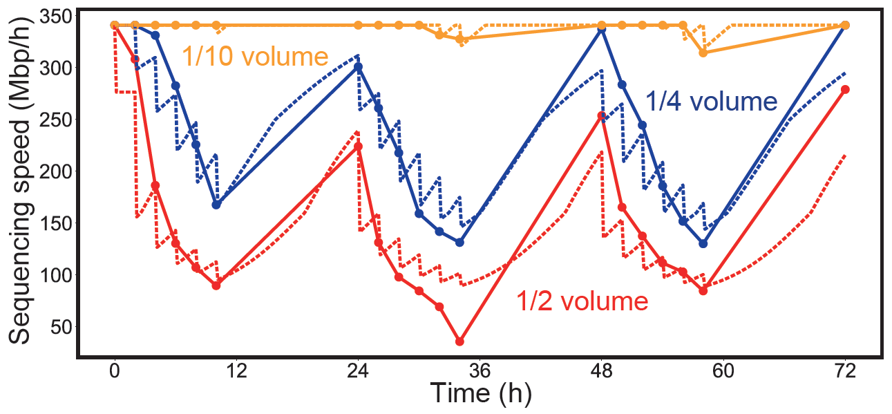 基于以上结果,作者使用H. bluephagenesis搭建了一个桌面式数据存储系统。整合了信息DNA的菌株被转移到液体培养基中,然后放置在开放的容器中自发生长,不施加温控、震荡等专业培养条件。每隔一定时间,取出一定体积的培养基用于信息恢复,同时补充同等体积的纯净培养基。结果表明,在取样间隙,细菌的生长和分裂自发地补足了取样的损耗,保证了信息多次分发和读取而不耗竭。这一系统不依赖于任何专业人员或复杂设备,可以在普通家庭环境或野外环境中使用。