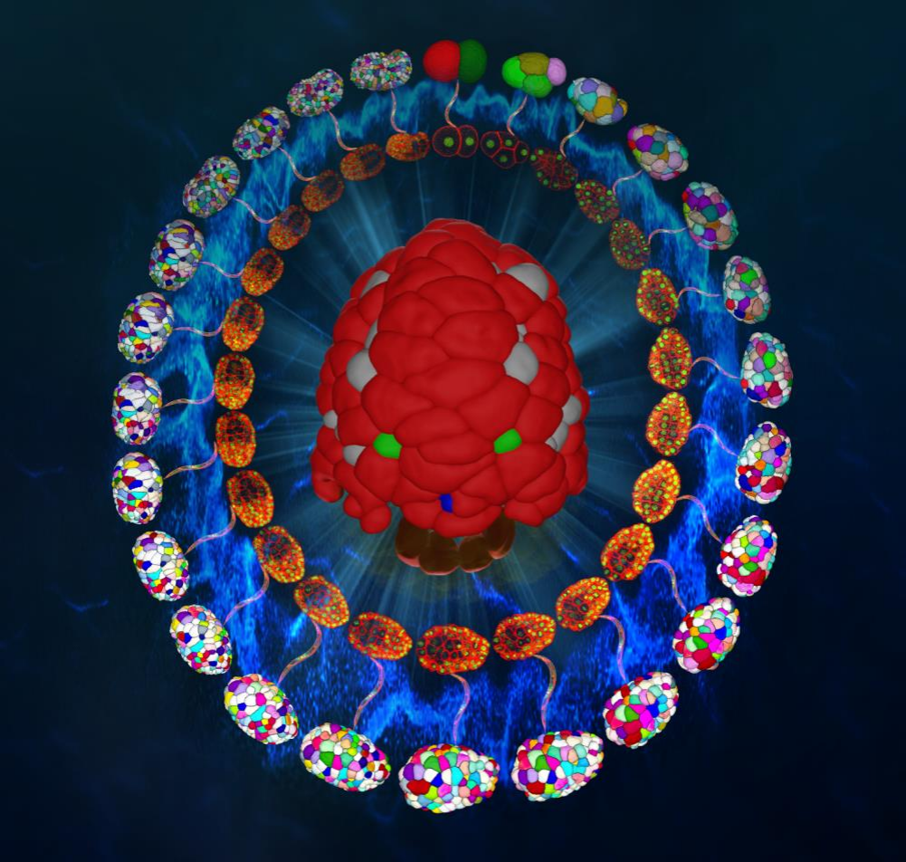 形态是细胞的基本几何与物理属性,能反映千变万化的生物学过程。例如,入侵性癌细胞的不规则形态反映其迁移能力,神经细胞的延展形态反映其连接能力。由于细胞密度、光毒性/光漂白性等限制,如何对完整的生命体系进行全面三维延时的细胞形态重构,是一个重要且具有挑战性的问题。此前,科学家曾在线虫(本研究团队于2020年的工作 [1])、海鞘 [2]、果蝇 [3]、斑马鱼 [4] 等物种进行部分胚胎发育过程的形态图谱构建,具备单细胞精度的全过程形态图谱仍未在任何物种里被构建 [5]。