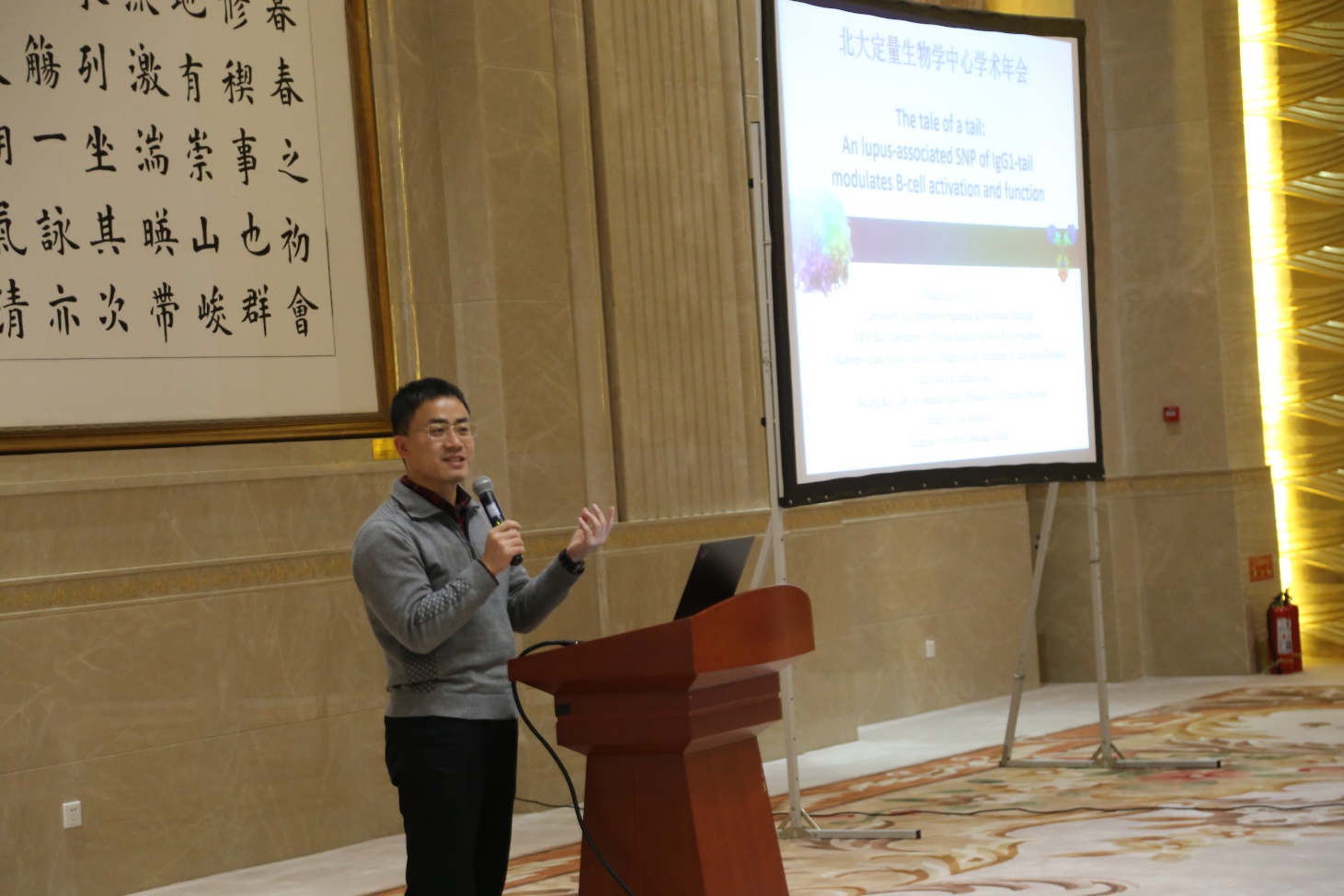 定量生物中心主任汤超教授首先对各位邀请报告人及参会人员表示了欢迎,中心副主任来鲁华教授从学术成果,团队建设,研究生培养等多个方面回顾了中心这一年丰硕的成果,鼓励大家进行更多开创性的研究。随后,特邀报告人清华大学刘万里研究员、浙江大学马骏教授、加州大学戴维斯分校(UC Davis)郑劼教授,庞培法布拉大学(Pompeu Fabra University)Lucas Carey教授分别就淋巴细胞活化的分子机制、果蝇胚胎发育中的调控机制、辣椒素与受体的结合机制以及生物演化的定量研究方面向与会师生介绍了研究成果。