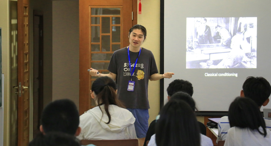 第三天齐志老师的讲座主题是"Developing group single-molecule technology to study condensate biology",他向我们介绍了单分子生物物理学的学科背景,展示了单分子技术的历史发展与应用,提醒大家关注单分子与复杂系统中间的介观尺度。梁希同老师课程的主题是"动物行为定量分析"。他用通俗易懂的方式,介绍了动物行为学研究的经典案例以及自己对章鱼和乌贼变色行为的探索历程,为同学们揭示了这一领域的无限可能。李志远老师课程的主题是"Quantitative Microbial Ecology",她由浅入深为我们展示了数学模型在理解生物世界中的作用,揭示了微生物世界中丰富多彩的相互作用和进化策略。这些讲解极大地激发了同学们对科研的热爱与探索精神,也为他们的学习之路提供了宝贵的引导。