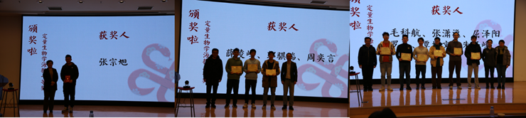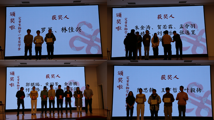 颁奖活动在轻松愉快的氛围下开启。2024年度定量生物学奖学金共评出一等奖2名,二等奖6名,三等奖9名,鼓励奖2名;现场投票评出优秀墙报一等奖1名,二等奖3名,三等奖5名。