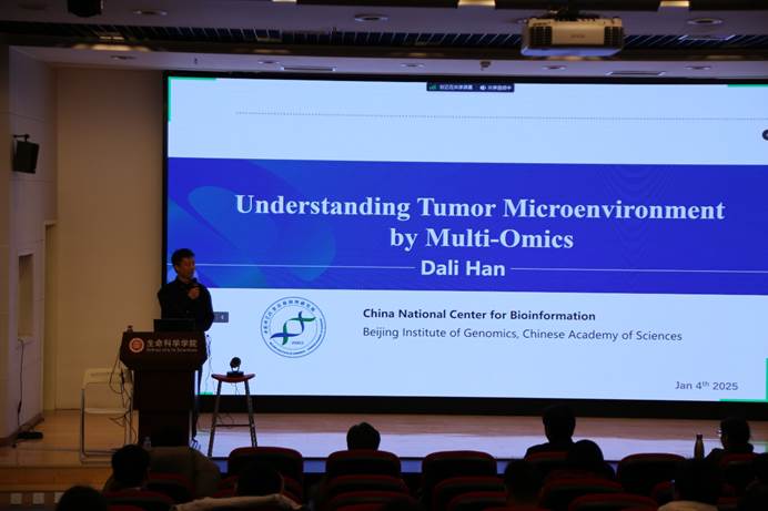 在特邀报告环节,多位专家学者围绕人工智能、生物医学和DNA存储等前沿领域进行了精彩分享。浙江大学陈华钧教授深入解析了“大语言模型+知识图谱”如何赋能 AI 科学发现,为智能技术在科研中的应用提供了新思路。中国科学院北京基因组研究所韩大力教授探讨了 RNA 修饰在肿瘤免疫治疗中的调控作用,揭示了其在精准医学中的潜在价值。西湖大学陈子博教授介绍了基于蛋白质的分子编程方法,为合成生物学和生物计算带来了新的可能性。斯坦福大学 Meng Sun 博士分享了免疫系统在人群感染性疾病和疫苗接种中的变异性研究,为公共健康和个体化医学提供了重要见解。