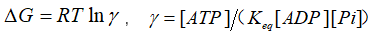 在本论文的第一部分中,研究者利用两变量模型,讨论了钙振荡是否发生依赖于输入的[ATP]以及水解自由能。这一部分所讨论的钙振荡皆为周期为几秒的高频钙振荡。本论文中用γ代表水解自由能水平,一摩尔ATP水解释放的能量为