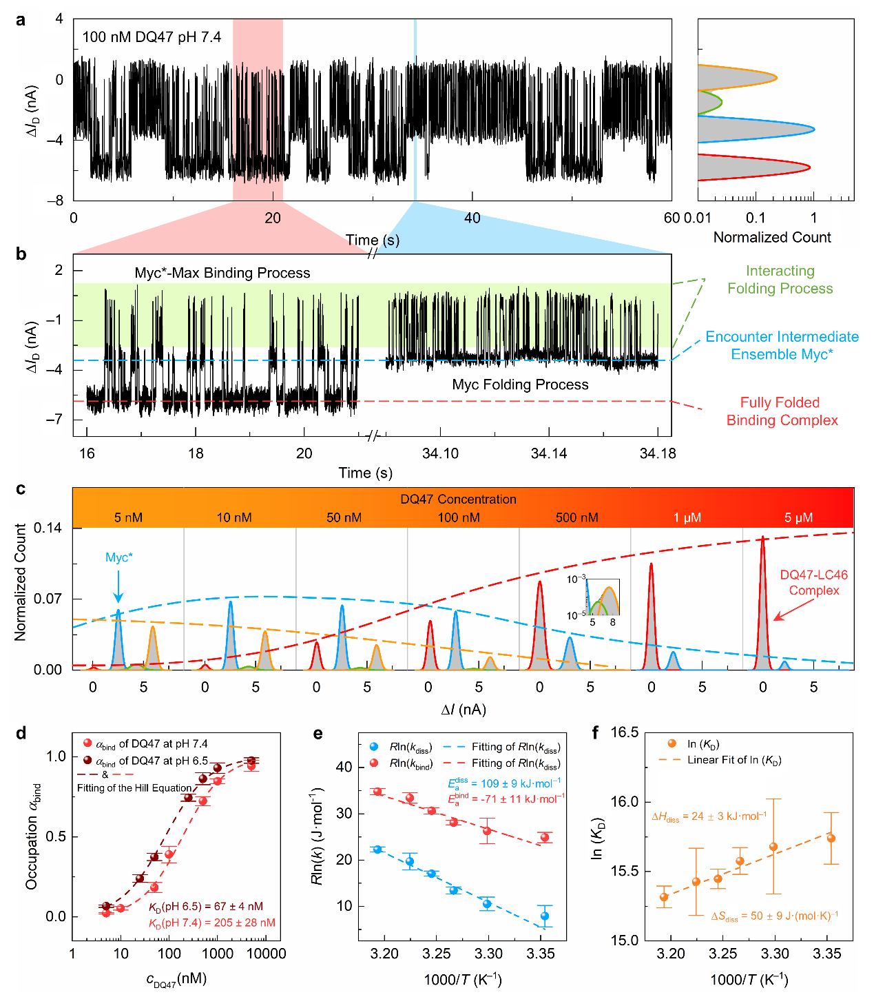 图2. Myc-Max相互作用过程的单分子电学实时监测。