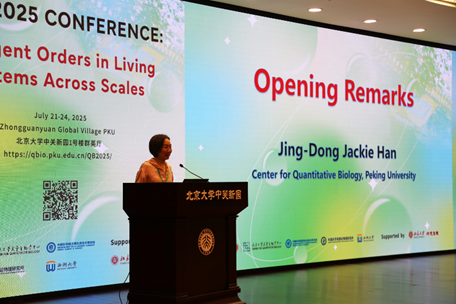 7月22日早上九点,会议正式启幕。北京大学定量生物学中心韩敬东教授致开幕辞,对与会者表示热烈欢迎,简单回顾了Q-BIO会议的历史,并阐明本届会议“生命系统中跨尺度的涌现秩序”的核心主题。接下来几天,27位杰出科学家和青年学者先后做报告,内容涵盖非平衡动力学、生物网络的跨尺度结构、自组织规律、合成生命系统的设计原理,以及AI在复杂生命系统中的应用等前沿议题。