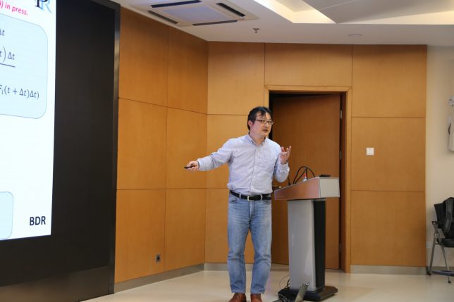 Invited by Dr. Chen SONG, Prof. Yuji SUGITA, from the Theoretical Molecular Science Laboratory of RIKEN (Institute of Physical and Chemical Research, Japan), visited us on May 22-24. He gave us a talk entitled “Machine Learning approach to link single-molecule FRET and MD simulations for understanding protein folding dynamics” on May 23, and had extensive discussions with us.