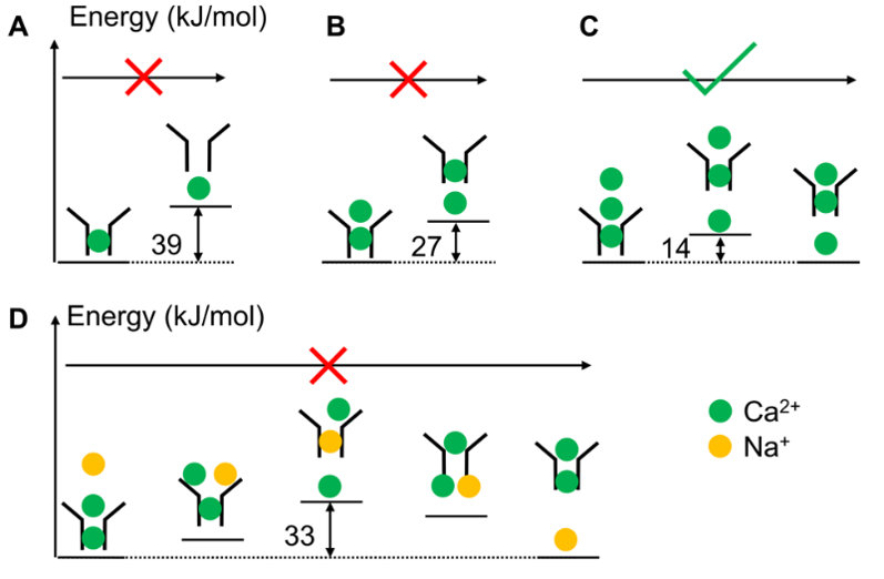 Lingfeng's work on the ion permeation and selectivity mechanisms of the voltage-gated calcium ion channel CaV1 has been published in PNAS (Link). In this work, Lingfeng showed that the three-ion knock-on mechanism not only enables the efficient calcium ion permeation but also helps to generate the valence selectivity because it is harder for sodium ions to get involved in the knock-on. Congratulations!