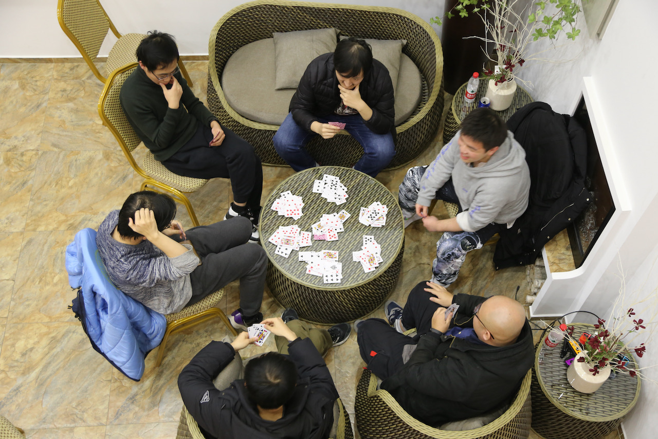 Tanglab的卡拉OK时光是制式的,以汤老师惯例的《成都》起始,后面是各位歌手的演绎时间。酒足饭饱之际,血液将集中于消化系统,“缺氧的大脑”正是体验最本真纸牌游戏的必需,两位老师也参与到了愉快的纸牌游戏中。这份平时难得的放松与欢笑,随着深夜更深,逐渐沉入梦乡。