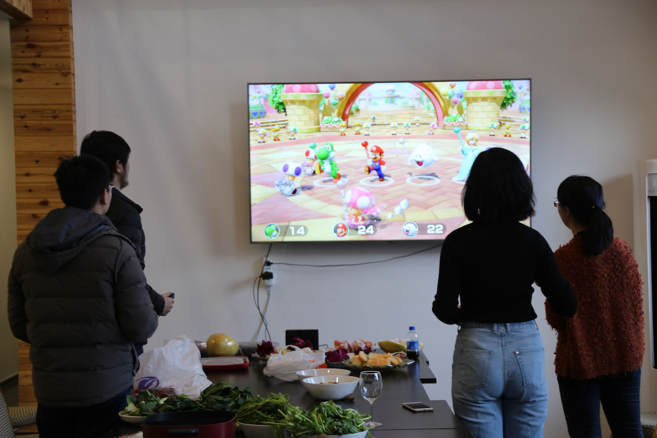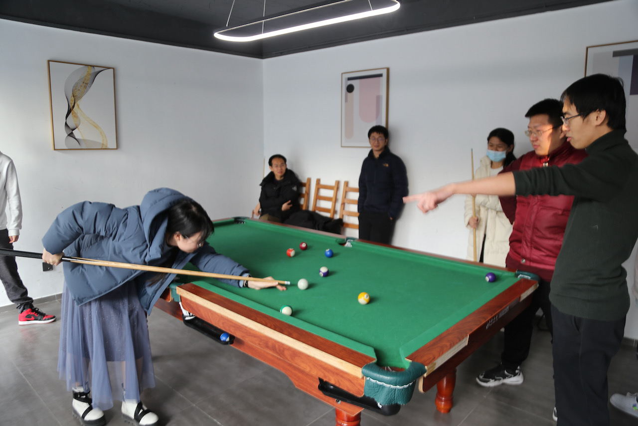 青龙峡脚下,目之可及的长城和晴朗的天空带来了郊外的气息,另成天往返于住处实验室的我们耳目一新。进入小院,办理好入住手续后,“度假”真正开始了。餐桌上堆满了早上买来的食物,几位同学在厨房准备晚餐的食材。万事俱备只待夜晚之际,台球厅里孙浩源进行着独家教学,几位初学者分成两组,轮流上阵,力图按照八球规则完成一局游戏。客厅显示器也连接了Switch,杨宁的游戏才华在这方面可谓鹤立鸡群……