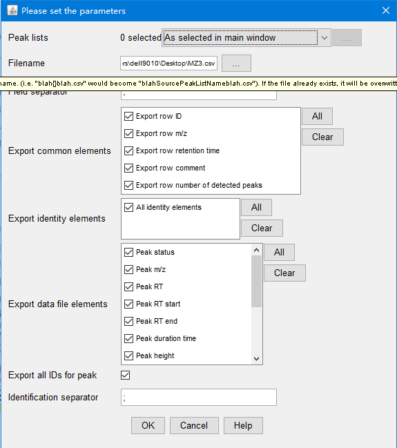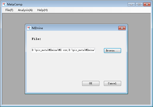 Two standard input files of MZmine:MZ1.csvand MZ2.csv