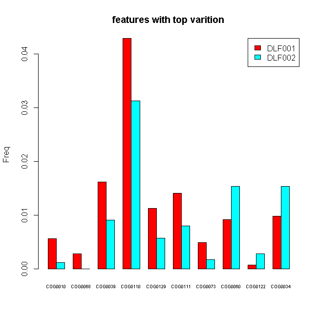 Figure 32: Bar plot for top ten significant differential features according to two-sample test.