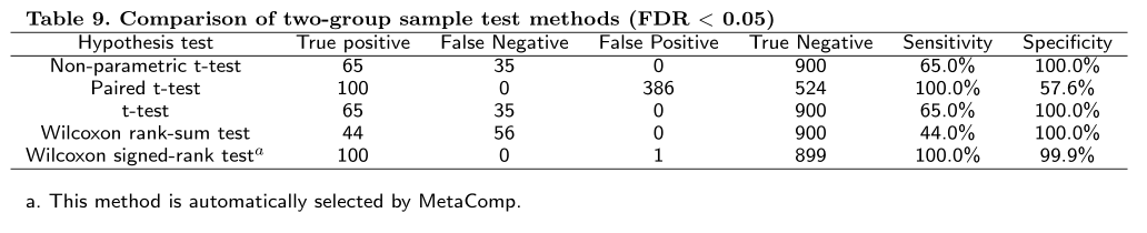 Table 1: Comparison of two-group sample test methods (FDR < 0.05)