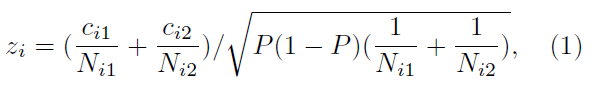 and P = (ci1+ ci2)/(Ni1+Ni2). Sincez-test is not valid if the feature size is insufficient, the prerequisite ofz-test is min(ci1, ci2) ≤ zi2. When the sample size is small or user demands a more strict hypothesis testing method, MetaComp also offers Fisher��s exact test as an alteration (see the user guide of MetaComp for detailed recommendation).